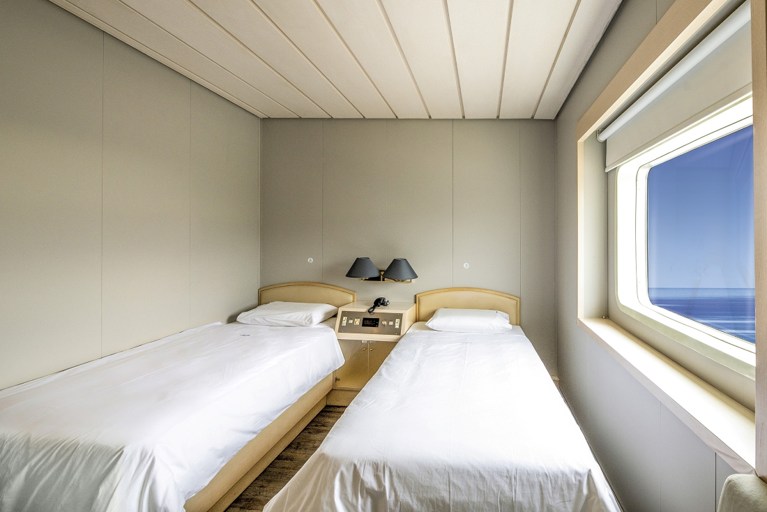 Economy class passages begin at 39 euros, with simple double cabins priced at 78 euros per passenger. Double exterior cabins run a bit more, at 82.50 euros. Other prices vary depending on cabin amenities and location.
