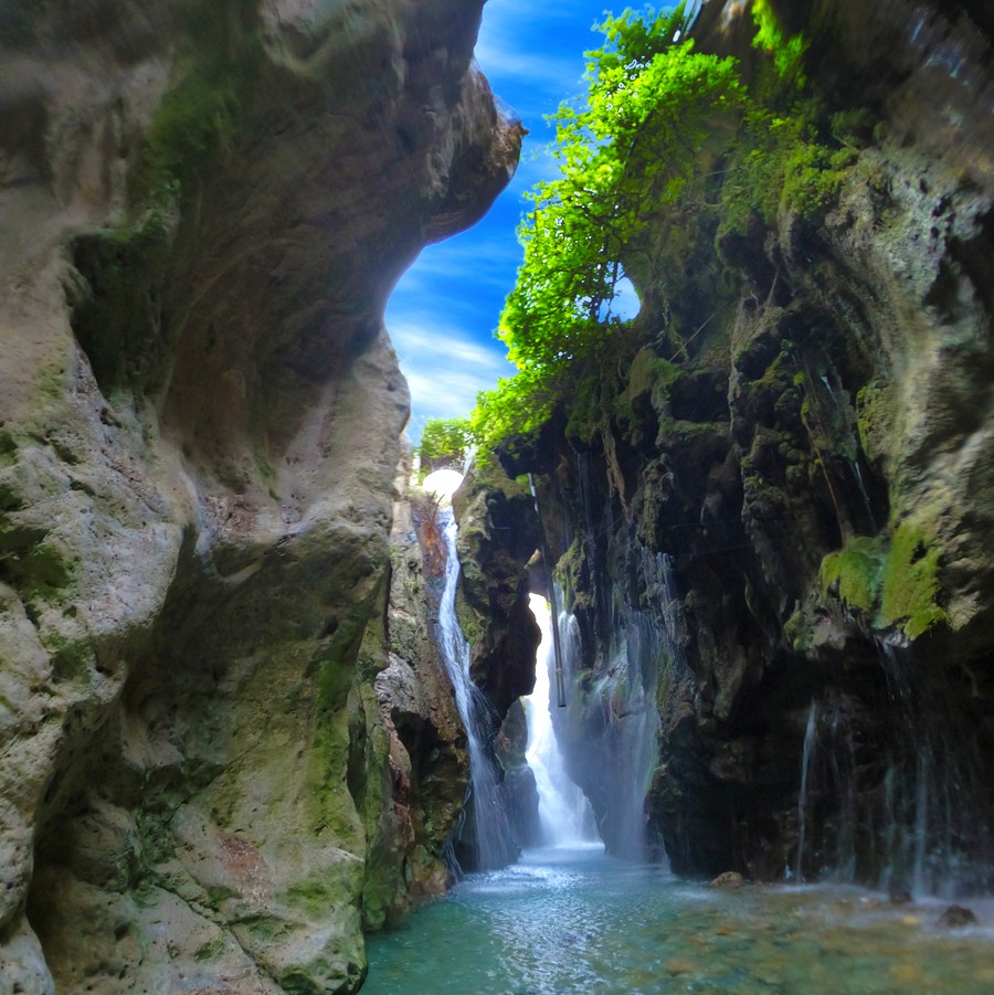 From balancing gnarled cliffs, places like Kourtaliotiko Gorge (below) unveil a narrow waterfall that falls deep into the earth, sacred and restored. Further east, Richtis Gorge offers a hike through muted winter light to a hidden cascade and a deserted beach. In the south, the wild drop of Milonas Waterfall tumbles forty meters into a cool basin that takes you by surprise in this otherwise parched land.
