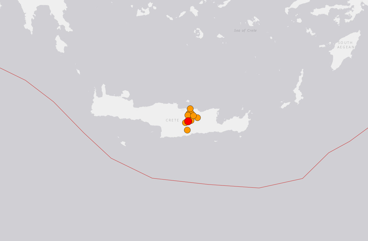 Heraklion, Crete was rocked for the second consecutive day by a severe earthquake of 5.3 magnitude. Here in the city, the ground shake was harsh for almost one minute, as a repeat of yesterday’s Crete quakes which sent residents into the streets. This 10 km deep event had its epicenter only a short distance from the previous 4 km WNW of Arkalochóri, Greece.