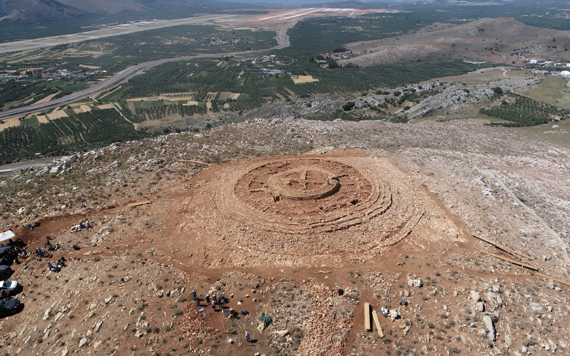 On the dusty ridges above the valley where Crete’s new Kastelli airport is rising, Papoura Hill sits quietly, carrying within its soil the memory of a Minoan world. What might appear to be an ordinary rise in the land has already revealed traces of an ancient monument—fragile, irreplaceable, and now caught in the storm of modern development.
