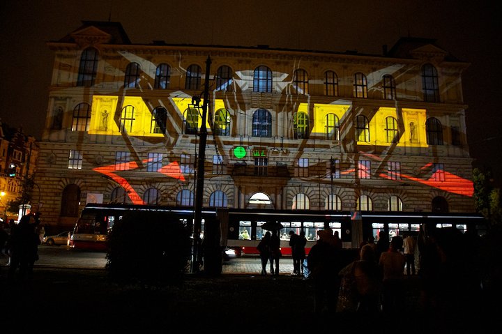 - A light effects show on the facade of the Academy of Arts (Image: Pražská muzejní noc on Facebook)